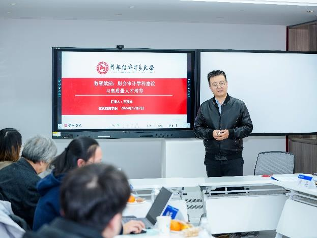 北京物资学院会计学院副院长王美英教授主持,对外经济贸易大学郑建明教授和中央财经大学会计学院副院长王彦超教授分别做了题为《构建数据价值生态的四大关键共性问题》和《数据资产:范畴、确认与交易》的主题报告。